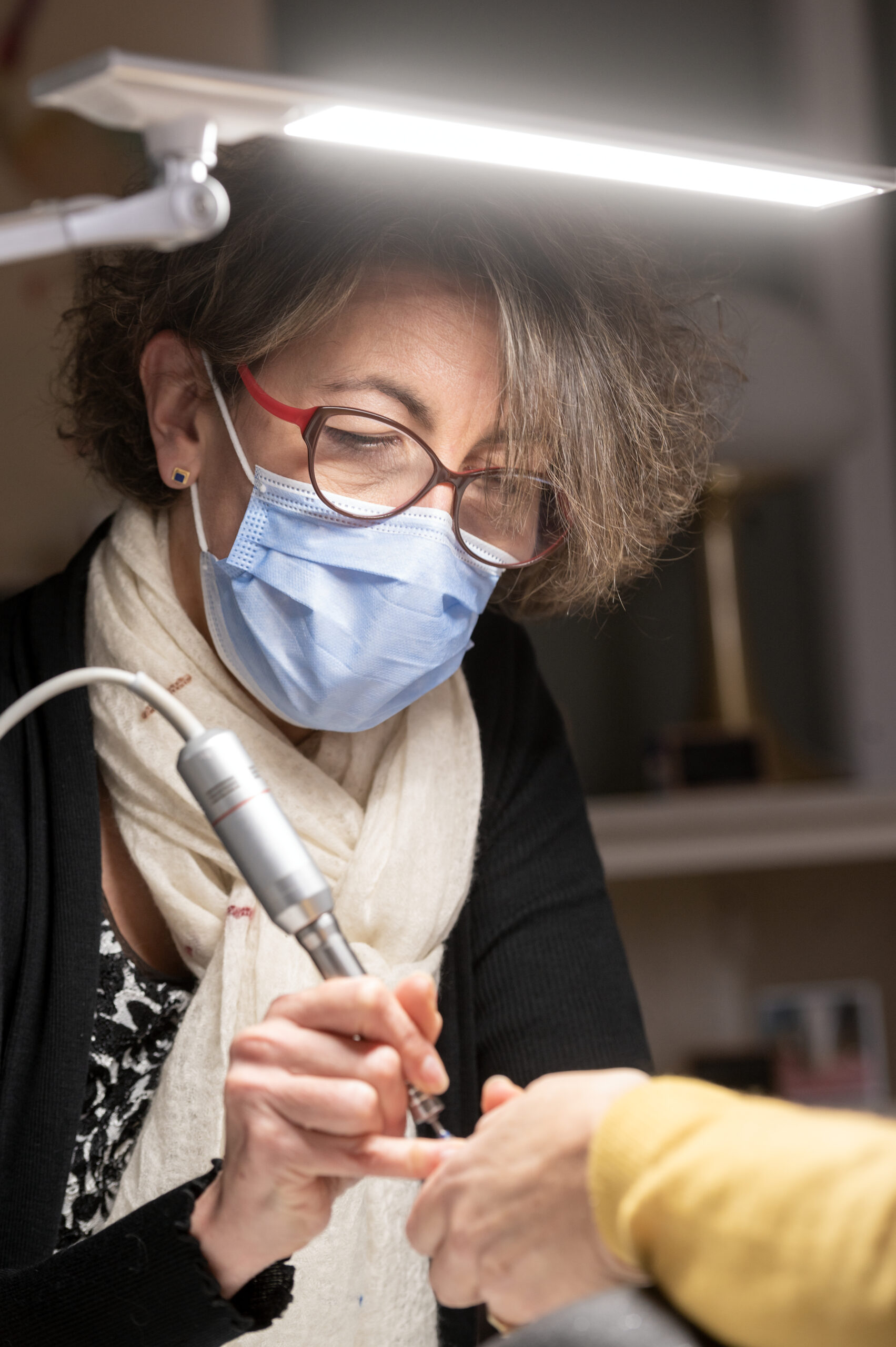 La pose d’ongles en gel ou résine, la beauté des mains, le vernis semi permanent Shellac sont des solutions.